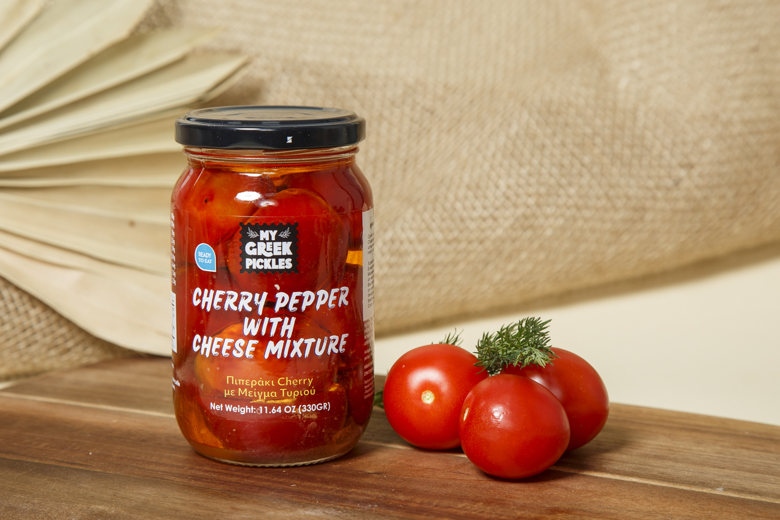 Пълнените чери чушки с фета са готови за консумация и могат да се сервират като предястие или мезе към вино, узо или други напитки. Отлично се съчетават със салати, могат да се добавят към сандвичи или да се сервират като част от разядки.