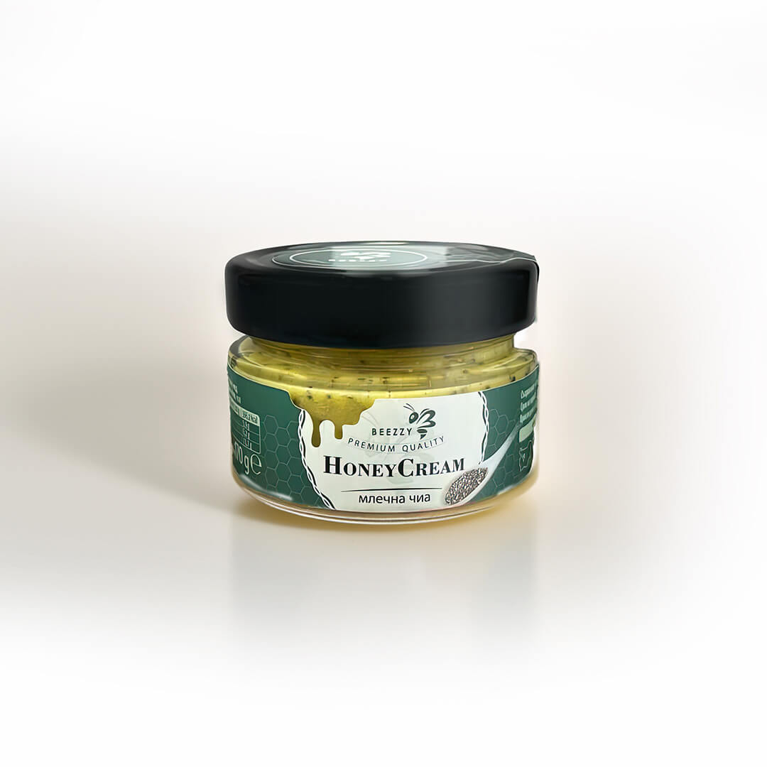 Състав: 100% пчелен мед,кондезирано мляко,чиа