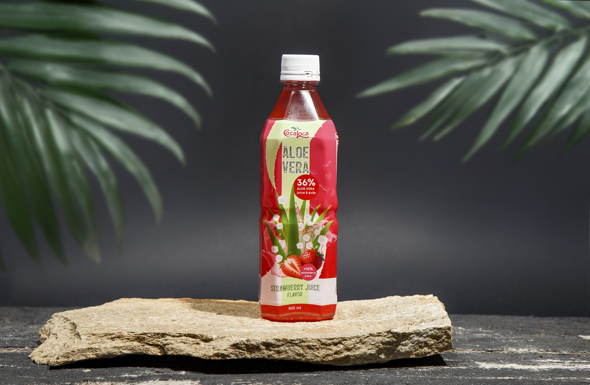 Истинско Алое вера в бутилка – кубчета и сок общо 36%, комбинирани с 10% истински сок от ягода за плодов и освежаващ вкус.
