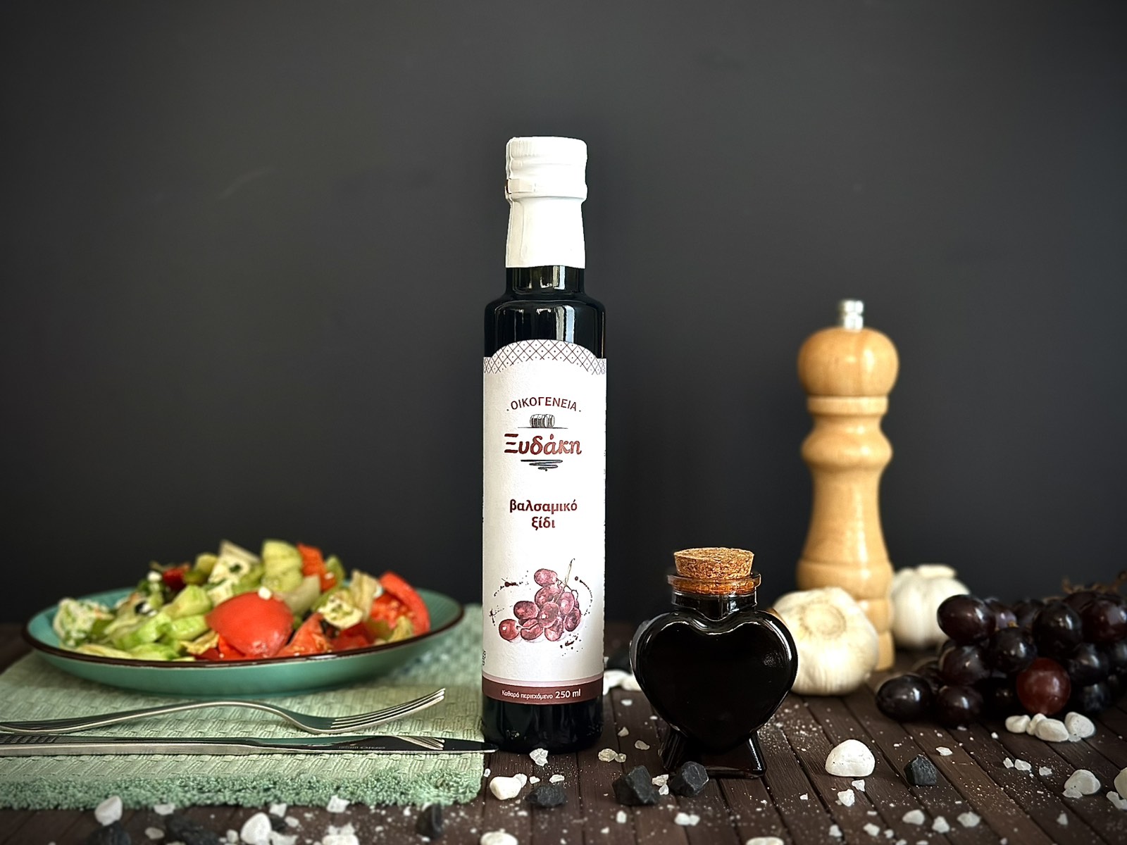 Тъмен балсамов оцет от сладка червена гроздова мъст без консерванти, оцветители и добавки. С чисти съставки и отличителен вкус, той е изключително подходящ за салати, зеленчуци на скара, месо, сирене и риба.